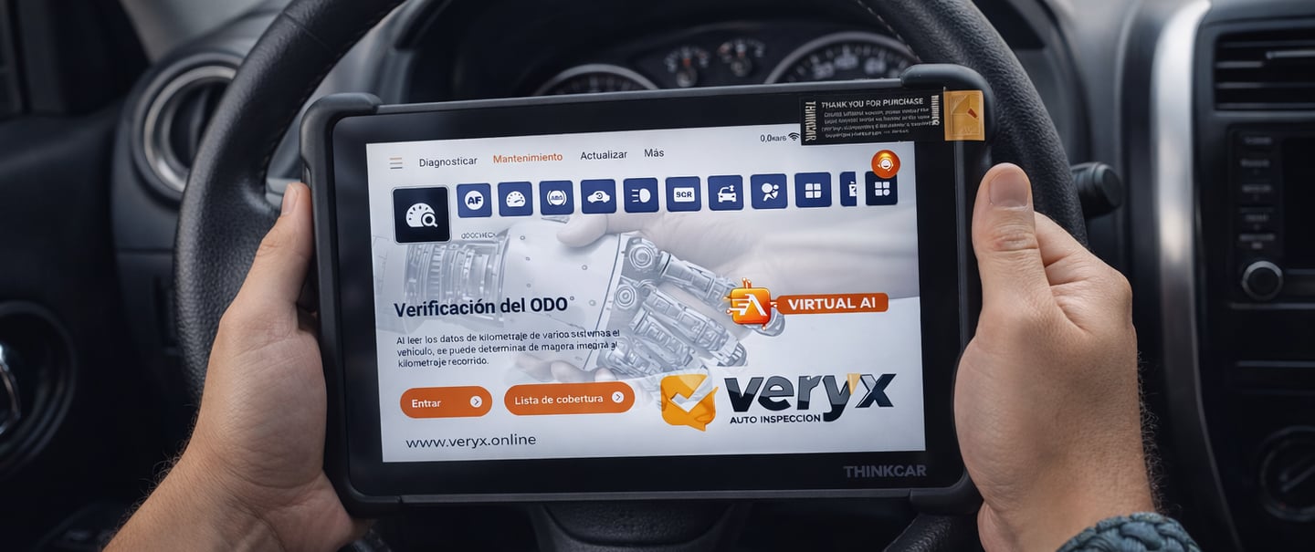 Escáner profesional con Inteligencia Artificial que analiza todos los sistemas del vehículo y detecta irregularidades que el ojo humano no ve — incluyendo la verificación del kilometraje real en todos los registros internos del auto