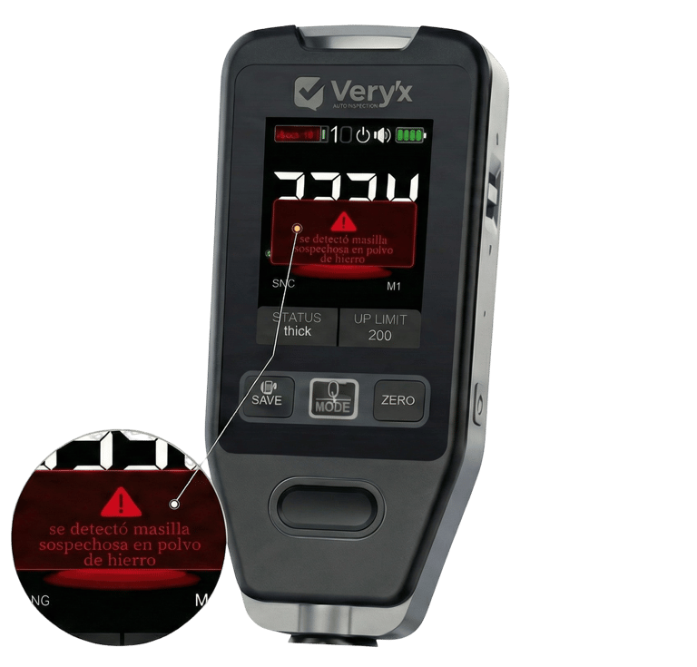 Tecnología de inducción electromagnética y corrientes de Foucault, detecta de forma rápida y precisa variaciones en el espesor de la pintura y la presencia de masilla o reparaciones disimuladas